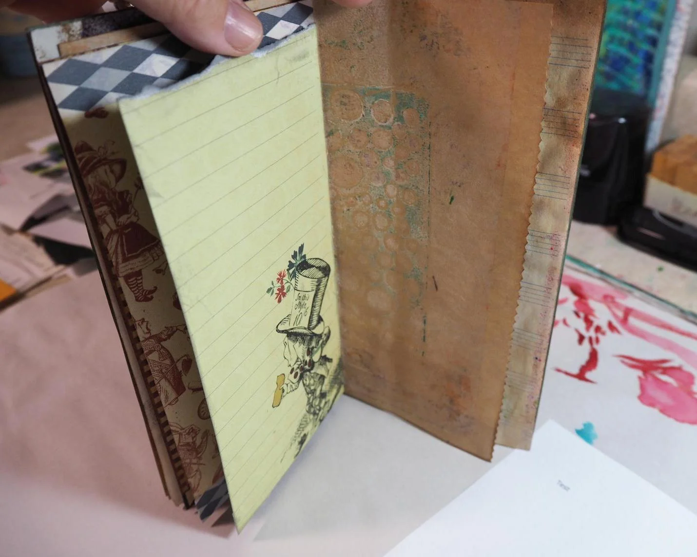 Joanne Hughes asked me if I would like to work in her personal Letter Journal (not a Round Robin) after she saw my Alice in Wonderland ATCs for Marion Bockelmann's Swap. Why Yes, I said, that would be fun. It arrived in my mailbox yesterday, all the way from Australia!