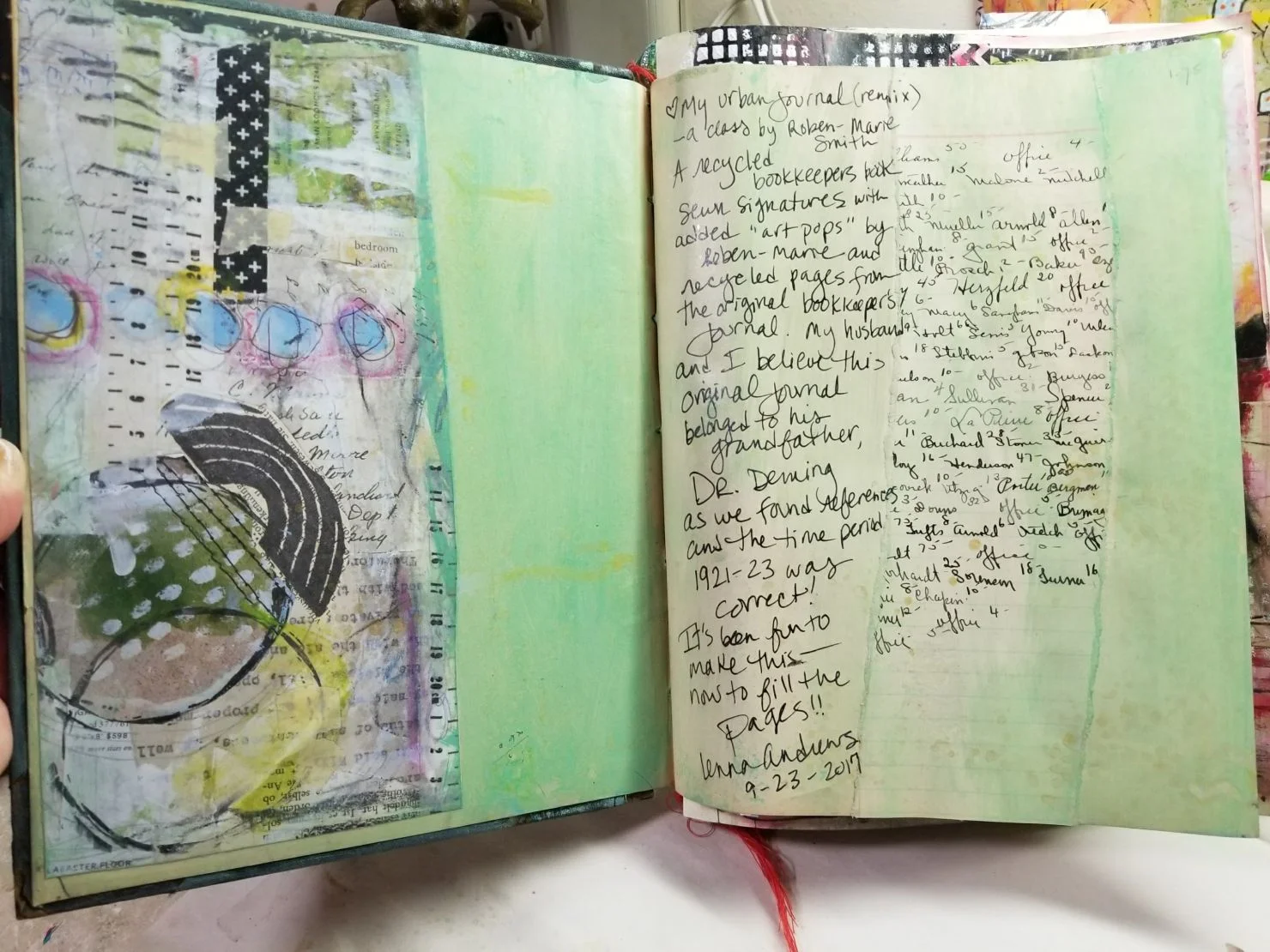 I have started a page in the "Art Journal" section of my website. I'm adding how I fill this new/old journal to this gallery here. You can see them peeking out behind the green page. There are more photos in the gallery!